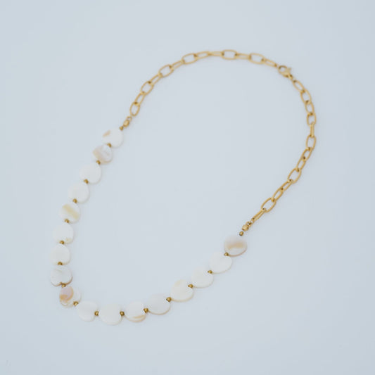 Colar Corações Madrepérola e Aço Inoxidavel Dourado