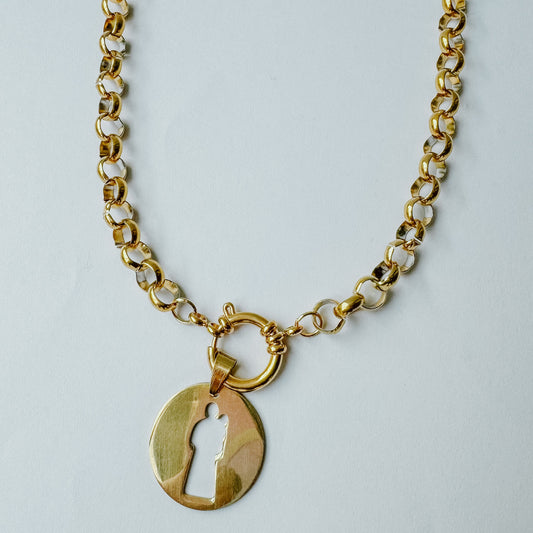 Escapulário Pai Nosso Aço Inoxidavel Dourado