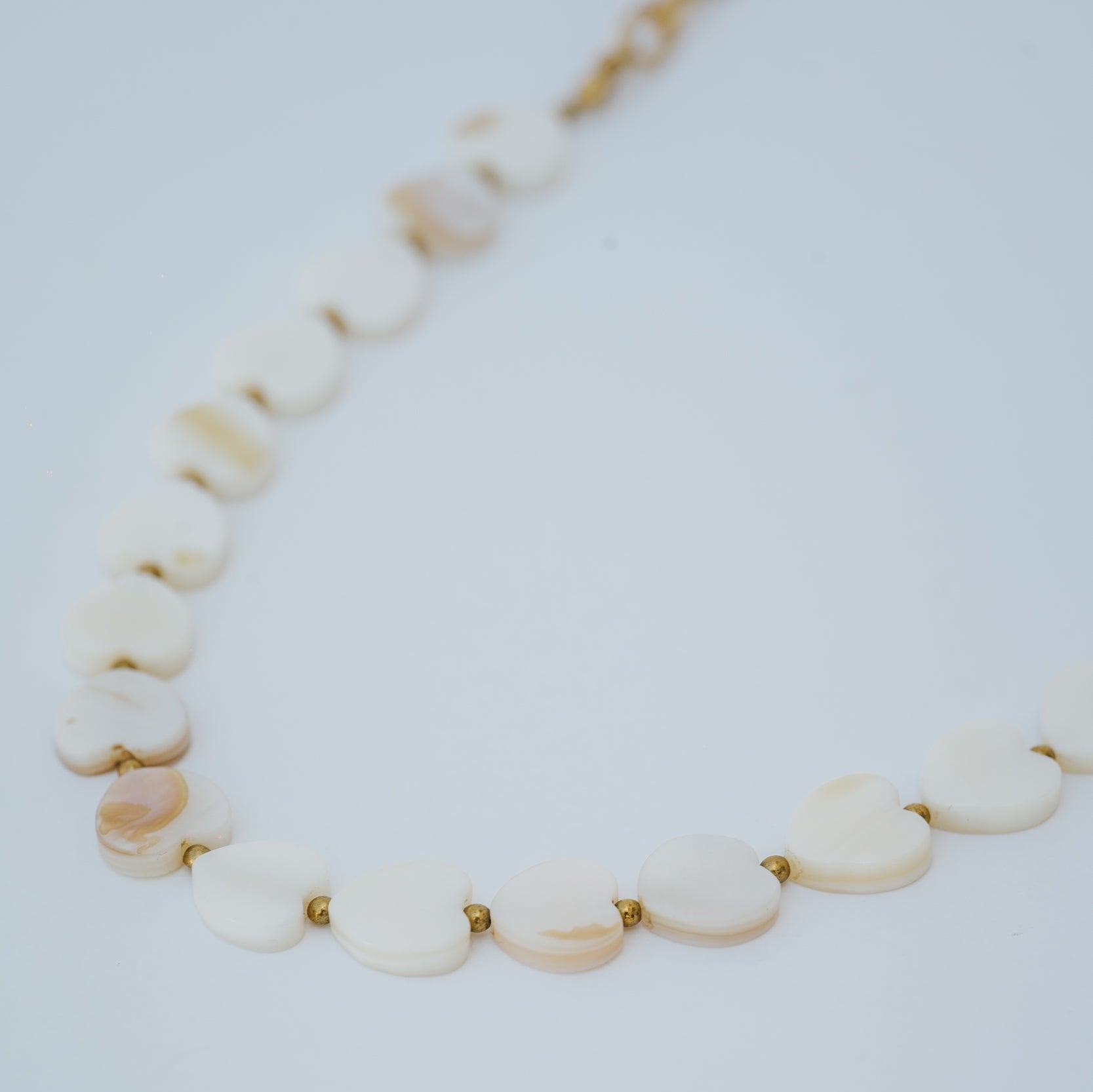 Colar Corações Madrepérola e Aço Inoxidavel Dourado.