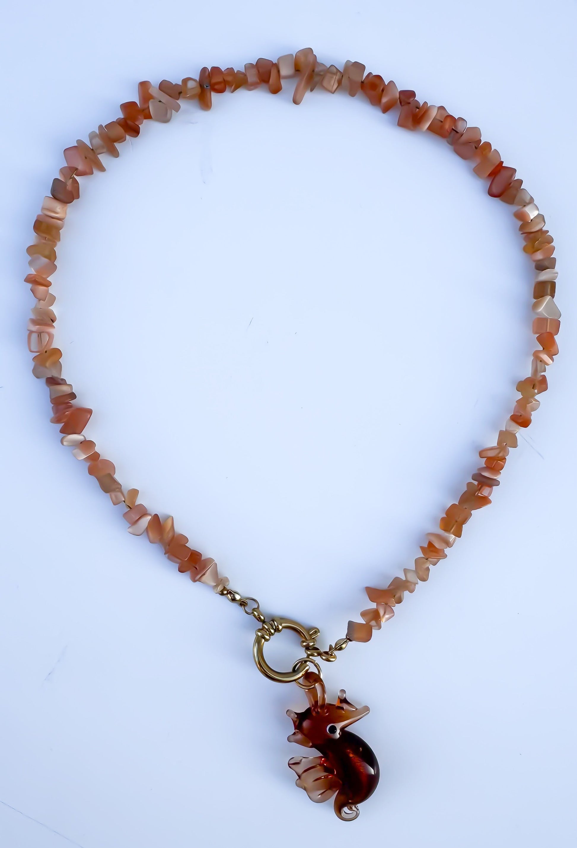 Colar todo em pedras naturais, com fecho leme e cavalo marinho de vidro